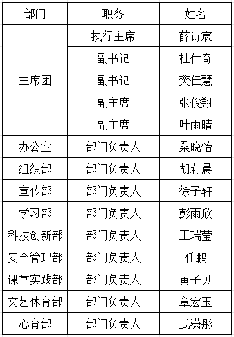 根据《长江大学学生干部管理条例》相关要求,本着公平、公正、公开的原则,经个人报名、资格审查、竞聘面试等环节综合考评,拟推荐薛诗宸等14位同学作为英国正版365官方网站第七届团委学生会主要学生干部。