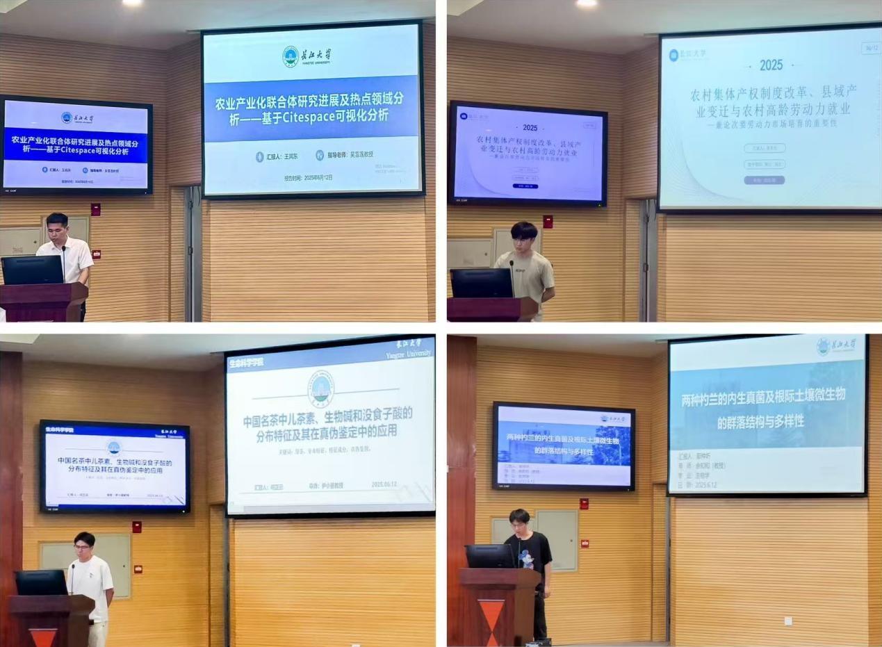 英国正版365官方网站的王其东和章非凡分别以《农业产业化联合体研究进展及热点领域分析——基于CiteSpace可视化分析》和《农村集体产权制度改革、县域产业变迁与农村高龄劳动力就业—兼论次要劳动力市场培育的重要性》为题,探讨了农业经济与农村发展的热点问题。生命科学学院的鄢仲圻和何正云则分别围绕《两种杓兰的内生真菌及根际土壤微生物的群落结构与多样性》和《中国名茶儿茶素、生物碱和没食子酸的分布特征及其在真伪鉴定中的应用》分享了他们的研究成果。